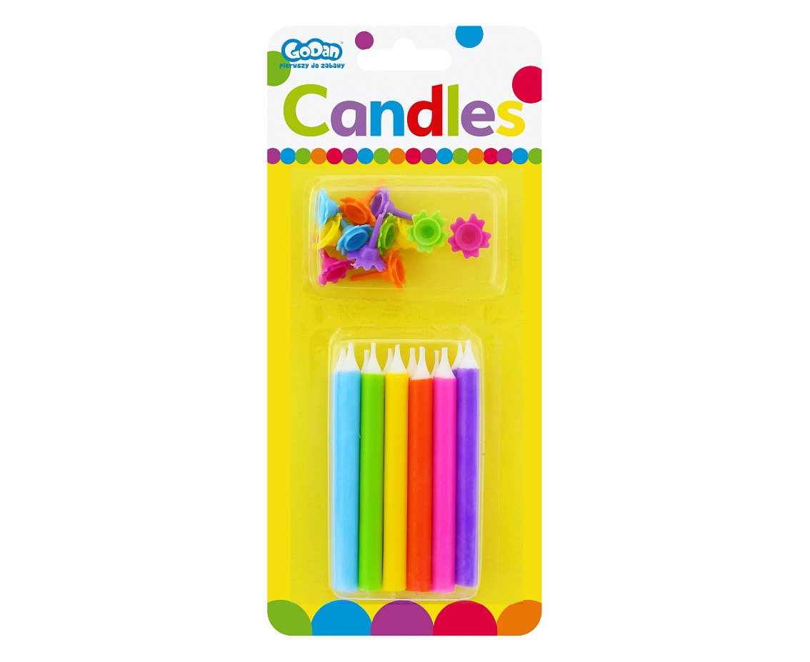 Świeczki urodzinowe Tęcza 12 sztuk 12 podstawek