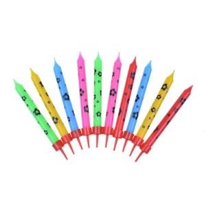 Kolorowe świeczki do dekoracji tortu. Wysokość świeczki 8 cm. Opakowanie zawiera 10 świeczek z podstawkami.