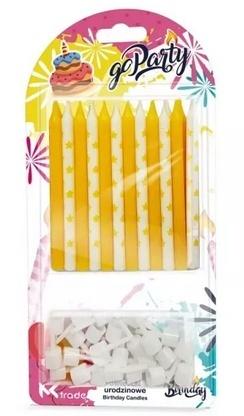 Świeczki urodzinowe żółte i białe, z gwiazdkami
