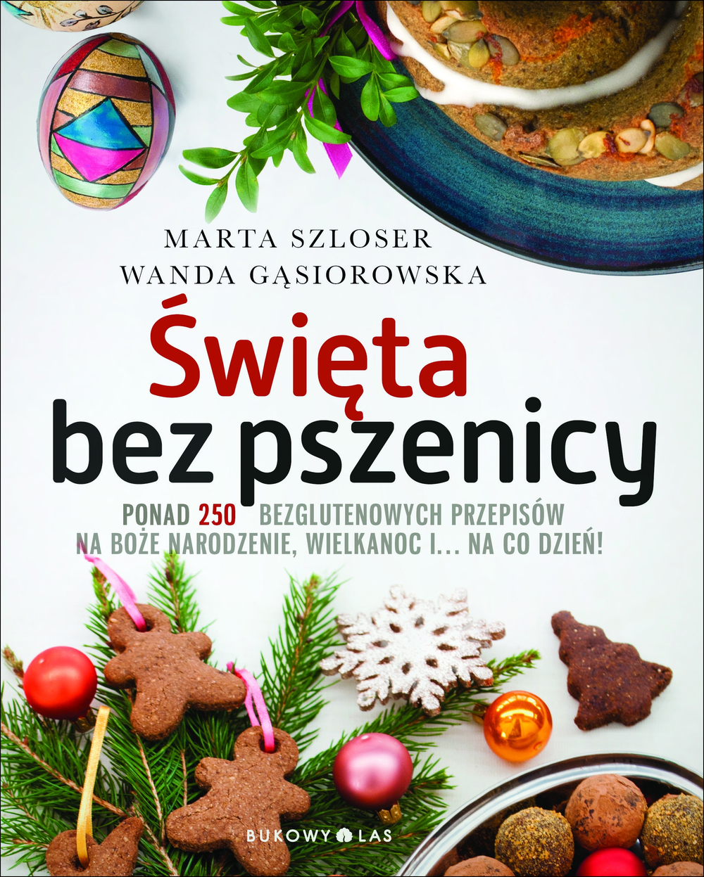 Uszka i pierogi, makowce, pierniki i serniki, baby, paschy, żurki i mazurki – wszystkie te smakołyki, i wiele innych obecnych na polskich świątecznych stołach, znajdziesz w niniejszej publikacji. Łącznie ponad 250 receptur na pyszne zupy, dania główne, przekąski, dodatki, chleby i bułki, ciasteczka, babeczki i desery, a także przydatne przepisy podstawowe, np. na ciasta pierogowe i naleśnikowe, majonezy, aromatyczne ekstrakty i polewy. Wszystko bez glutenu, cukru i szkodliwych E-dodatków, a często także bez nabiału lub w wersji wegańskiej. Z wykorzystaniem nowych zdrowych produktów, urozmaicających bezglutenową dietę, a także z ograniczeniem mało wartościowych, wysokowęglowodanowych oczyszczonych mąk oraz skrobi. Niektóre z zamieszczonych w książce potraw przyrządza się zazwyczaj tylko raz w roku (np. kutię, kompot wigilijny, paschę czy wielkanocnego baranka), ale większość doskonale wpasowuje się w menu całoroczne. Pieczywo, barszcze, pasztety, kluski, pierogi czy cała gama słodkości to propozycje uniwersalne. Z tych przepisów możesz z powodzeniem korzystać przez cały rok, nie tylko od święta!