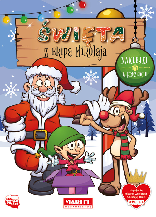 „Święta z ekipą Mikołaja” z naklejkami to bajeczka zilustrowana nastrojowymi obrazkami świątecznymi przeznaczonymi do kolorowania. Opowiada o przygotowaniach do świąt w wiosce Świętego Mikołaja i jego bliskich: Pani Mikołajowej, bałwanka Fredusia, elfa Eryka, misia Franka, kucharza Ciastusia i renifera Rudolfa. Mikołaj wyrusza do dzieci z prezentami, lecz po drodze napotyka na drobny problem…