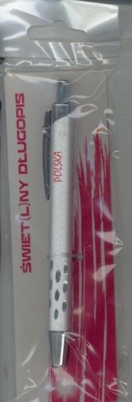 ZDJĘCIE TYMCZASOWE Długopis z latarką LED! To świet(l)ny gadżet dla każdego! Z napisem Polska. Latarka LED umieszczona u nasady długopisu doskonale oświetla pole pisania, co ma duże znaczenie przy braku odpowiedniego oświetlenia. Ten rewelacyjny długopis idealnie sprawdzi się m.in. w samochodzie, torebce, a o zmroku stworzy super duet z kluczami - niezastąpiony przy otwieraniu drzwi! Trzykrotne kliknięcie włącza latarkę.