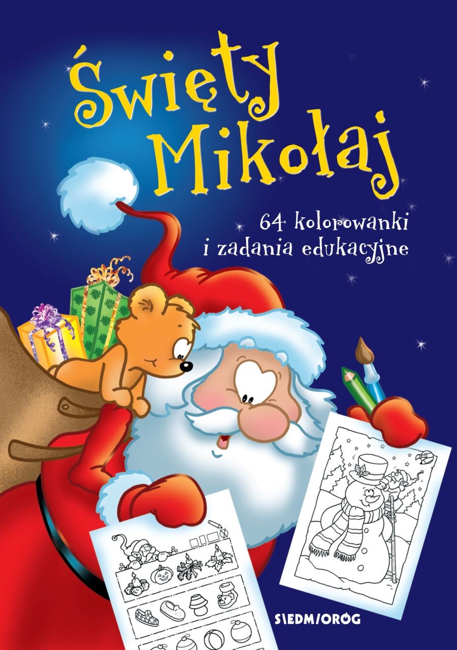 Wkrótce przyleci do nas Święty Mikołaj! Kolorowymi kredkami, flamastrami lub farbkami nadaj piękne barwy Mikołajowi i jego światu! Rozwiąż zimowe zagadki, układanki i łamigłówki! Opowiedz o śnieżnych pejzażach, choince zdobnej w bożonarodzeniowe dekoracje, dzieciach pędzących na sankach i wielu innych historyjkach, jakie odkryjesz na kartkach tej książki. Ta piękna książka aktywizująca o Świętym Mikołaju jest niezwykle mądra: wyciągnie dziecko w interaktywną opowieść o zimie i jej radościach, a równocześnie, pośród śmiechu i zabawy, niepostrzeżenie przemyci wiele zadań edukacyjnych przygotowujących malucha do podjęcia nauki w zerówce!