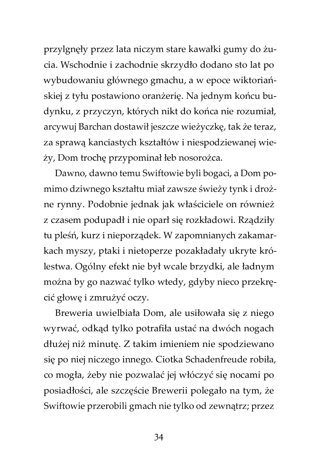 Breweria Swift jest specjalistką od awantur i wybryków, znawczynią wszystkich tajemnych przejść i zakamarków i właśnie szykuje się do wielkiego zjazdu rodzinnego. Tego dnia jak co roku wszyscy Swiftowie będą poszukiwać dawno zaginionego skarbu prawuja Zdrożnego. Tym razem jednak dzieje się coś nieoczekiwanego - ktoś zrzuca ze schodów ciotkę Schadenfreude!