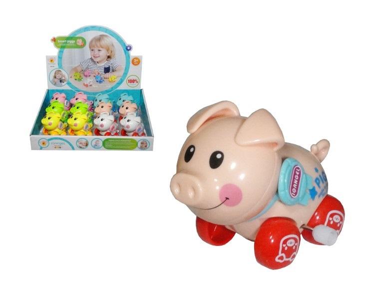 Zabawka świnka do nakręcania. Po nakręceniu porusza się do przodu, a także porusza ogonkiem (prawo,lewo) oraz głową (prawo,lewo). Produkt występuje w kilku wersjach kolorystycznych, wybierany losowo. Cena dotyczy jednej sztuki.