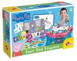 Baw się świetnie z biurkiem Peppa Pig i bogatym zestawem gier i aktywności edukacyjnych, które rozwijają logikę, uwagę, pamięć i wyobraźnię. Dodatkowo, biurko posiada schowek w którym zmieszczą się wszystkie gry! W zestawie znajduje się gra pamięciowa, minipuzzle do nauki kolorów, cyfr i głosek, gry z kształtami geometrycznymi, rozpoznawanie kształtów i suchościeralna tablica z markerem do nauki czytania i pisania z pomocą praktycznej instrukcji zabaw. Wiek: 2+