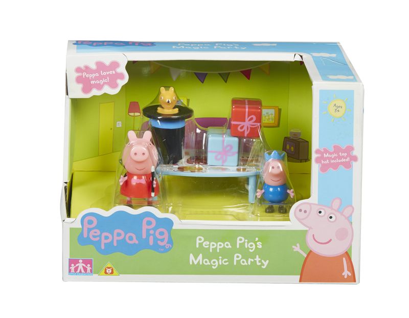 Zestaw zawiera: figurkę Peppy i Georga stolik magiczny kapelusz dwa prezenty. Zabawka dla dzieci od lat 3.