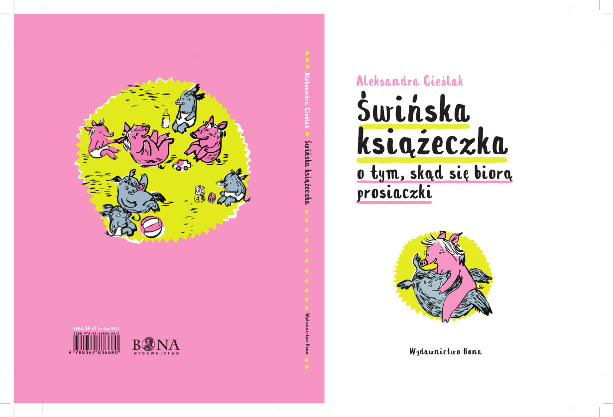 Świnia i Dzik tworzą razem udaną parę. Spacery, kolacje, kino – nie może być lepiej! No chyba, że … w piątkę. A może nawet w ósemkę? „Świńska książeczka” to dowcipna książka obrazkowa, o tym, jak powstają małe świnki. To opowieść o miłości i urokach bycia rodzicami, którą stworzyła Ola Cieślak, autorka m.in. takich pozycji, jak „Złe sny”, „Co wypanda, a co nie wypanda”,„Koala disco”, czy wreszcie „Książka do zrobienia”, która nagrodzona w tym roku Wyróżnieniem BolognaRagazzi Award for Art Books.