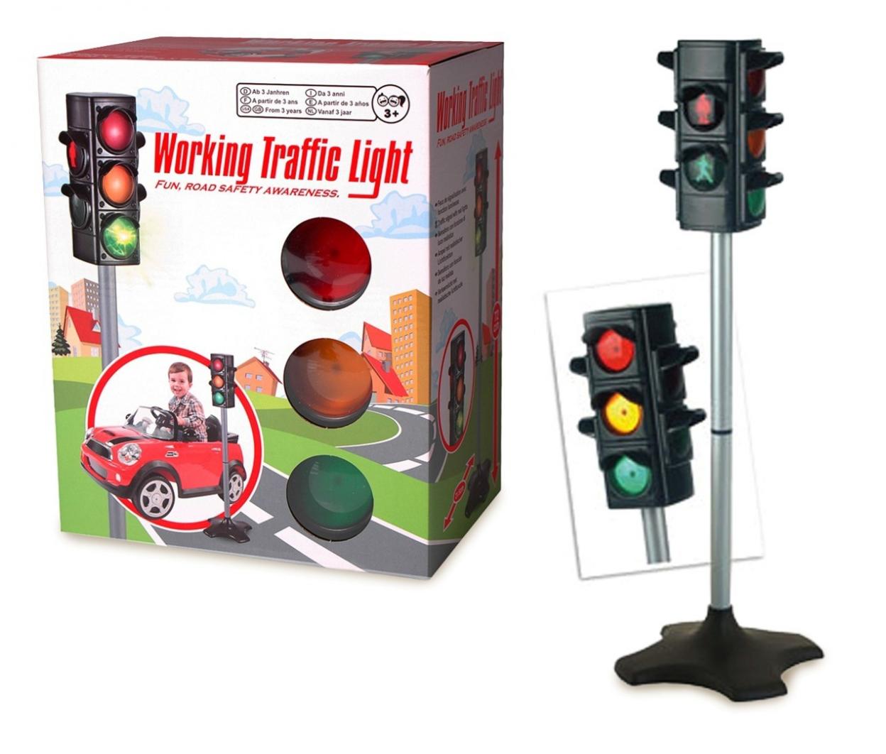 W zestawie: sygnalizator wys. 72 cm; funkcje: 2 tryby: manualny - światła zmieniają się po naciśnięciu przycisku znajdującego się na sygnalizatorze; automatyczny - światła zmieniają się samoistnie co ok. 35 sekund; efekty świetlne i dźwiękowe; wym. opak.: 23 x 28 x 16 cm; baterie: 3 x AAA 1,5 V niedołączone; 3+