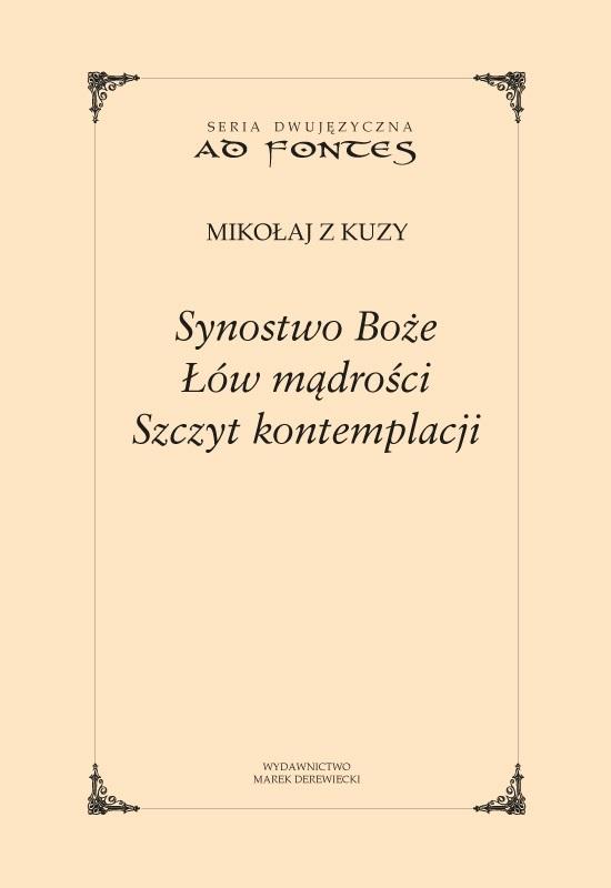 Książka Mikołaja Kuzańczyka (1401-1464) składa się z trzech, jak dotąd nieprzetłumaczonych, traktatów - Synostwo Boże (1445), Łów mądrości (1463) i Szczyt kontemplacji (1464), w tłumaczeniu Antoniego Śmista. Zestawienie tych trzech tekstów pozwala przedstawić najważniejsze problemy, które przenikały myśl Mikołaja Kuzańczyka, a także strategię prowadzonych przez niego rozważań, zorientowanych na poszukiwanie niepojętego Boga. W traktacie Synostwo Boże autor ukazuje chrystologiczny wymiar swoich  rozważań filozoficznych, w traktacie Łów mądrości przedstawia swój stosunek do tradycji filozoficznej, z kolei tekst Szczyt kontemplacji stanowi nowatorską próbę poszukiwań Boga jako Posse ipsum, czystej możliwości, której istnienie  zdaniem filozofa  powinno być oczywiste dla umysłu ludzkiego.
