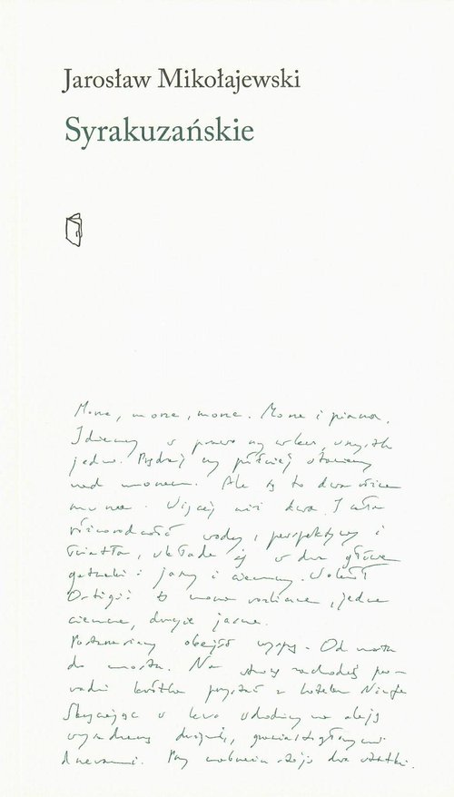 „Piszę: «lecę do Syrakuz». Lecz ściśle mówiąc lecę do Katanii, stamtąd jadę autobusem, trochę dłużej niż godzinę. Jest późny wieczór, po lewej, gdzie domyślam się morza, prowadzi nas linia industrialnych świateł. Byłem kiedyś w tych miejscach, widziałem wybrzeże poharatane przez przemysł w ramach bezmyślnego wyrównywania szans Południa wobec Północy, które nosi wszelkie znamiona mediolańskiego czy rzymskiego alibi, by niszczyć piękno poza własnym podwórkiem. Nie muszę tego sprawdzać. Wiem. Widzę oczami pamięci kamienie – trudno zgadnąć czy będące resztkami starożytnych domów i świątyń, czy naturalnymi skałami, widzę łąki, na których przeszło dwa tysiące siedemset lat temu szukali nowego miejsca na ziemi pierwsi kolonizatorzy z Grecji. Gdzie znajdując w jaskiniach czaszki karłowatych słoni, roili sobie istnienia jednookich Cyklopów i snuli historie o wynaturzonych dzieciach Zeusa, o strąceniu do Tartaru, o spotkaniu wędrowca Odysa z biednym Polifemem. Biednym? Tak, biednym. Bardzo biednym. Naszym. Wyrównał szanse i format nas, małogłowych, z wielkogłowym Cyklopem Krzysztof Karasek, poeta z homerycką brodą, opisując oślepienie Jednookiego przez kogoś, komu na imię Nikt. Przerzucając tęczę pomiędzy oślepionym Polifemem a nami, którzy co dzień dociekamy przyczyn naszego bólu, i w odpowiedzi słyszymy dokładnie to samo, co usłyszał Cyklop: Nikt. Nikt nam nie zadał zgryzoty, nic nas nie rozjątrzyło, a przecież nosimy w sobie przyczyny, stan zapalny i śmiertelne skutki tych rozjątrzeń i cierpień. Kto poharatał wschodnie wybrzeże, plaże Augusty i półwyspu Thapsos, gdzie w VIII wieku przed świętym Pawłem Grecy szukali źródła z czystą wodą? Nikt. A przecież Nikt nie należał do pierwszych ludzi na tej ziemi, zamieszkanej jeszcze w epoce brązu. Nawet tam rozsnuto pajęczynę rurociągów, która wyznacza teraz autobusom rozjarzony szlak od Katanii do Syrakuz”.