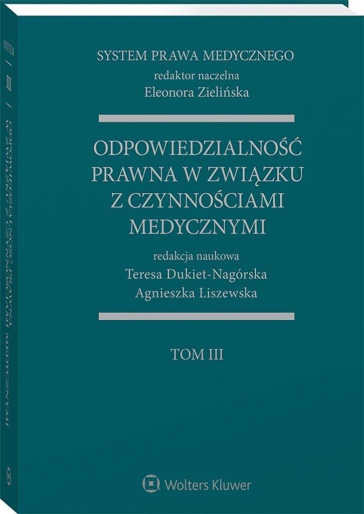 Tom III Systemu Prawa Medycznego to kompendium wiedzy z zakresu odpowiedzialności prawnej w związku z czynnościami medycznymi oraz organizacją i finansowaniem opieki zdrowotnej przez organy publiczne. Autorzy szczególnej analizie poddali charakter relacji między różnymi reżimami odpowiedzialności prawnej oraz wskazali różnice w zasadach ich funkcjonowania i stosowanych sankcjach.