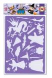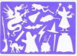 Szablony idealne do dziecięcych zabaw oraz samodzielnego przygotowywania różnego rodzaju ozdób. Zawierają kontury fantastycznych stworzeń. Wykonane z kolorowego transparentnego tworzywa sztucznego.