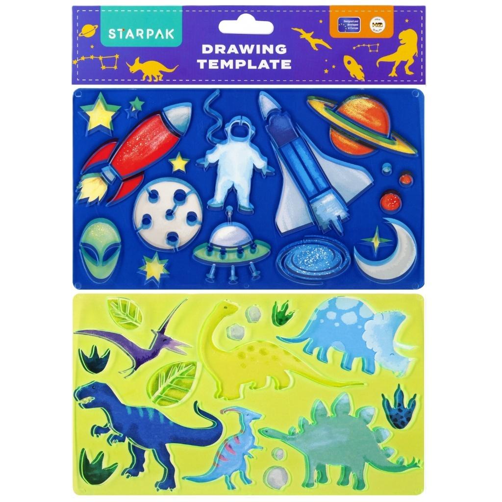 Zalety produktu Szablon z kolekcji STARPAK Dinozaury i Kosmos. Szablon umożliwia dzieciom rysowanie precyzyjnych figur, kształtów a następnie zabawę, np. kolorowanie. Idealny podczas nauki poznawania nazw zwierząt czy planet. Wykonany z trwałego tworzywa.
