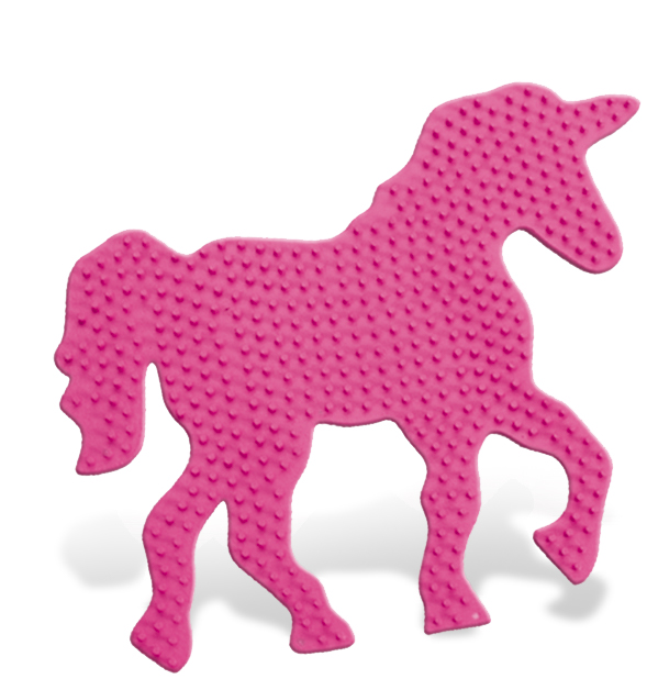 Specjalna podstawka z wypustkami do ułożenia mozaiki z koralików w kształcie jednorożca. Po ułożeniu koralików na szablonie, należy przeprasować je przez pergamin aby otrzymać trwały obrazek. Szablon można wykorzystywać wielokrotnie. Wyprodukowano w Holandii.