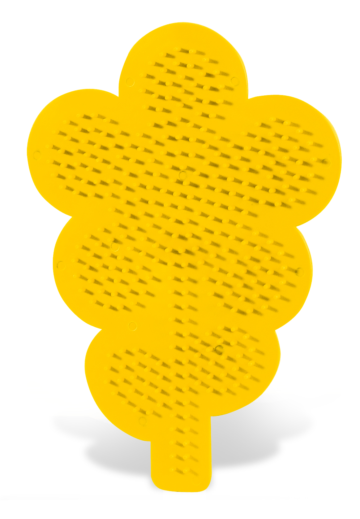 Specjalna podstawka z wypustkami do ułożenia mozaiki z koralików w kształcie kwiatka. Po ułożeniu koralików na szablonie, należy przeprasować je przez pergamin aby otrzymać trwały obrazek. Wyprodukowano w Holandii.