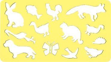 Szablony zwierząt, idealne do dziecięcych zabaw oraz samodzielnego przygotowywania różnego rodzaju ozdób. Zawierają kontury zwierząt domowych, dzikich, morskich pogrupowane tematycznie oraz motywy świąteczne. Wykonane z kolorowego transparentnego tworzywa sztucznego.