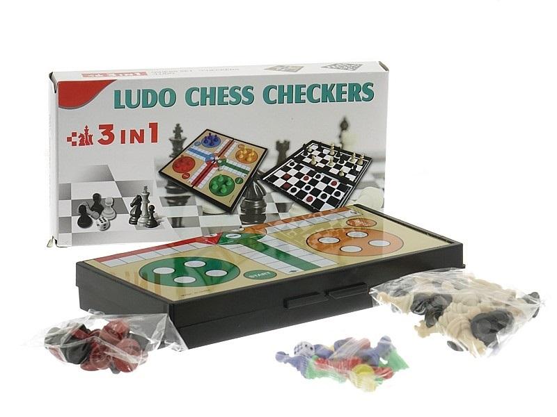 Szachy, warcaby, ludo, magnetyczne, zestaw gier 3w1,