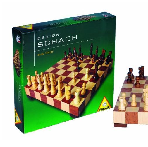 Szachy wykonane z drewna. Wymiar szachownicy 28,3 x 28,3 x 4,6 cm. Król o wys. 6,3 cm.