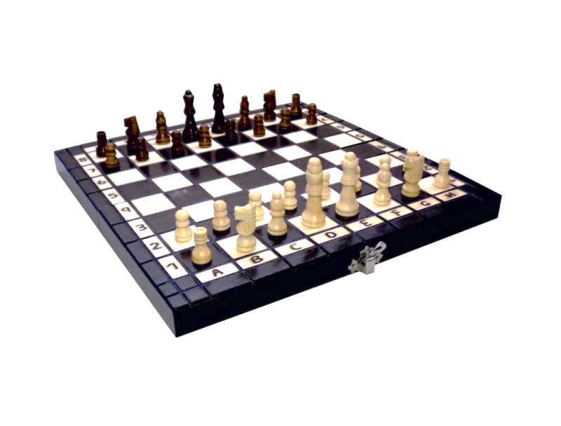 Szachy tradycyjne drewniane w pudełku - rozmiar kasetki po rozłożeniu 27x27cm.