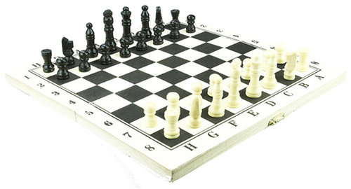Szachy – rodzina strategicznych gier planszowych rozgrywanych przez dwóch graczy na 64-polowej szachownicy, za pomocą zestawu bierek (pionów i figur). Popularnie, choć nieprecyzyjnie, szachami nazywa się również wspomniane bierki. W skład zestawu wchodzi: - 8 x pionków - 2 x goniec - 2 x wieża - 2 x hetman - 1 x król - 1 x królowa Wymiary: 21 cm x 21 cm