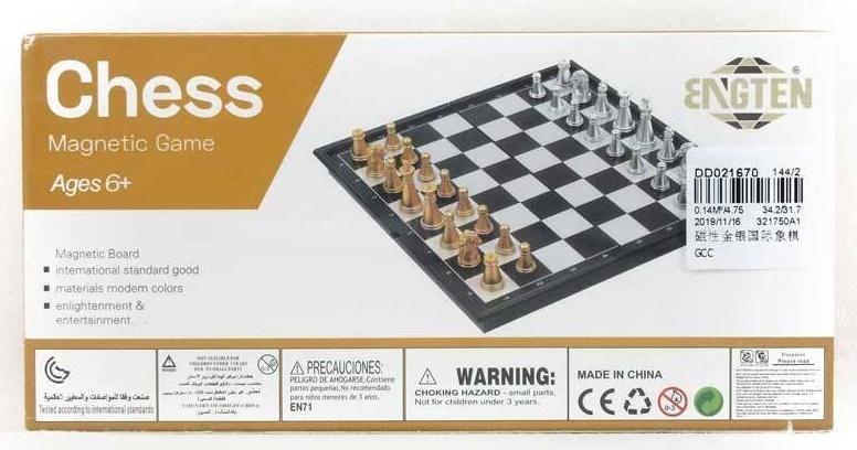 Szachy magnetyczne 20 cm. Produkt nie potrzebuje baterii. Zabawka przeznaczona dla dzieci powyżej 6 roku życia.