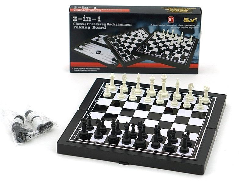 Szachy, zestaw gier 3w1, magnetyczne; 29x14x4cm, Box