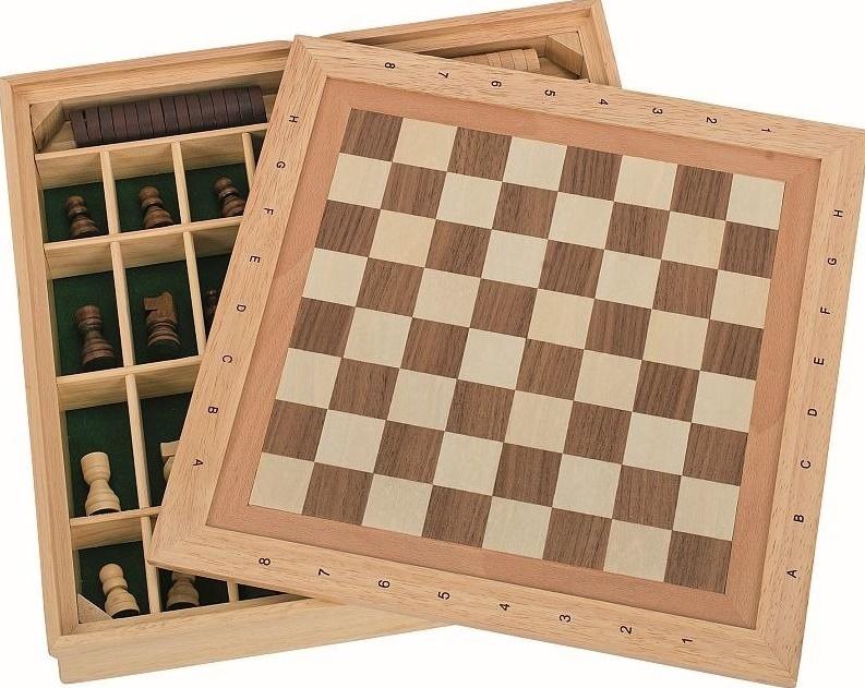 Zestaw trzech klasycznych gier w drewnianym pudełku będzie wspaniałym uzupełnieniem kolekcji. Zestaw zawiera trzy najpopularniejsze gry planszowe. Grają w nie miliony ludzi na całym świecie, często również w ramach konkursów. Jedna strona planszy zawiera białe i czarne kwadraty i służy zarówno do gry w szachy, jak i w warcaby. Druga strona planszy służy do gry w młynka. Wszystkie trzy gry są grami strategicznymi dla dwóch graczy.