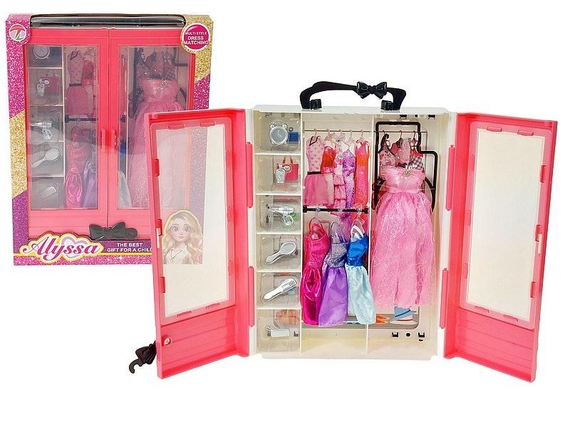szafa z 4 sukienkami dla lalek 29cm + akcesoria; 33,5x26x8,5cm, W/B