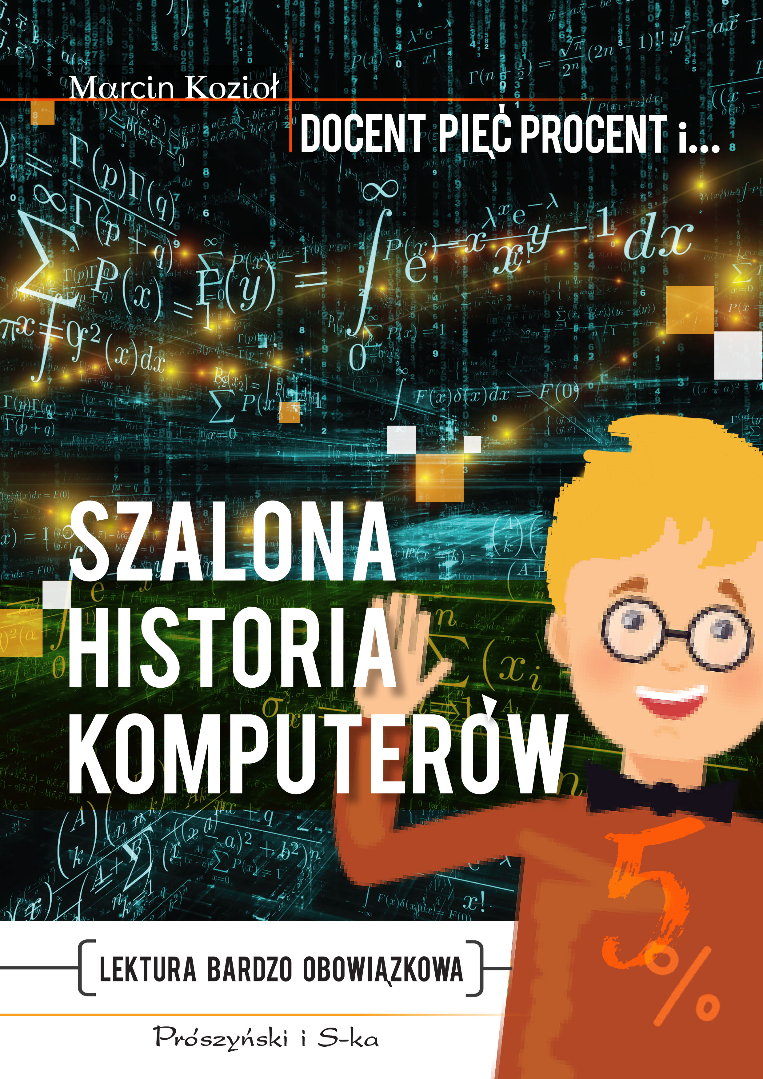 akiej książki o komputerach jeszcze nie było! Historię komputerów opowiadają Docent Pięć Procent oraz pies (?es). Obaj dali się „wessać” i z wnętrza komputera („sieci komputerowej”) przedstawiają nie tylko dzieje komputerów, ale też… gier, internetu itd. „Bo jak się jest w środku komputera – wie się o nim wszystko”. Nieco szalona forma graficzna nawiązuje stylistycznie zarówno do bardzo popularnego Minecrafta, jak i wielu gier mobilnych, które wykorzystują modną teraz „kanciastą” oprawę. Jednocześnie jest to bezpośrednie nawiązanie do historii 8-bitowych komputerów, z którymi sentymentalnie związane jest całe pokolenie 30/40-letnich tatusiów oraz 50/60-letnich dziadków. Zarówno forma graficzna, jak i sposób narracji są na tyle uniwersalne, że z pewnością urzekną nie tylko sześciolatków, ale i dorosłych czytelników tej książki Niezwykle lekka, ale bardzo rzetelna, jeśli chodzi o wiedzę, i fachowo skonsultowana opowieść „Szalona historia komputerów” może być wykorzystywana w różnorodnych działaniach edukacyjnych, m.in. w szkole. Równie fascynująca dla dziadka, jak dla wnuka! Dorota Koman Marcin Kozioł urodził się w 1977 roku. Mając 16 lat, otrzymał stypendium United World Colleges / Towarzystwa Szkół Zjednoczonego Świata i Gordonstoun School, dzięki czemu liceum kończył w Szkocji (1994–1996) – w szkole Gordonstoun, znanej z surowych zasad i wychowywania od okresu międzywojennego wszystkich męskich kandydatów do brytyjskiego tronu. Na tej szkole wzorowała się autorka Harry`ego Pottera – według informacji podanych w filmie dokumentalnym Discovery Channel odwiedzała szkołę, czerpiąc inspirację. W całej swojej historii w szkole uczyło się tylko dwóch Polaków. Pierwszym był Autor. Marcin Kozioł spotkał na swojej drodze wiele niezwykłych osób. Choć nie potrafi tego robić, tańczył na kameralnym pokazie przed samą Królową Elżbietą II i o mały włos nie wpadł wprost w objęcia Jej Królewskiej Mości, wywołując przerażenie na twarzach agentów specjalnych. Zapalony podróżnik. Zwiedził ponad 40 krajów. Na co dzień ekspert mediów elektronicznych i marketingu. Pierwszą książkę (dla fanów mikrokomputerów) opublikował w 1993 roku, w wieku 16 lat (pracę nad nią zakończył rok wcześniej). Wkrótce potem ukazało się jeszcze kilka jego publikacji dotyczących programowania komputerów (Amiga).