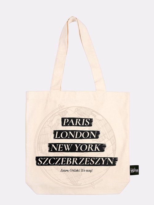 Paris, London, New York, Szczebrzeszyn – na pewno znasz te lokacje, wszak słyną one z wielu atrakcji. Warto jednak zwrócić szczególną uwagę na stolicę mody, którą jest tutaj Szczebrzeszyn. I nie chodzi bynajmniej o fatałachy, a o modę na polszczyznę – skrzypiącą, szeleszczącą i świszczącą! Ta wyjątkowa i modna torba sprawi, że wyróżnisz się z tłumu. Została stworzona przez uznanych projektantów pracujących dla największych domów mody w Szczebrzeszynie. Pasuje do najbardziej wyszukanych stylizacji, a co najważniejsze – dzięki niej wzbudzisz podziw i uznanie wśród osób łamiących sobie języki podczas czytania na głos. Torba uszyta w Polsce, idealna na podróże, te małe i te duże. Szyk, klasa i polszczyzna w jednym produkcie. Learn Polish, it's easy! Gramatura 280 g/m2 Nadruk wykonany metodą sitodruku (wysokiej jakości, bardzo trwały) 100% bawełna, torba ekologiczna Idealna torba podróżnicza Elegancka metka boczna W środku torby pojemna kieszonka na akcesoria Wymiary: 41 x 42 x 8 cm, ucho: 64 x 3,5 cm Prać w niskiej temperaturze, prasować na lewej stronie, nie czyścić chemicznie