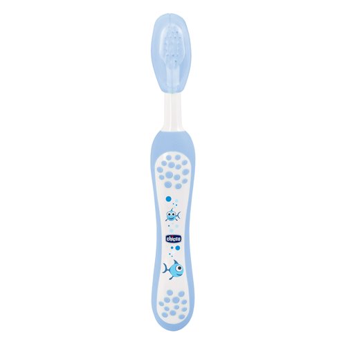 Chicco Szczoteczka do zębów z małą, zaokrągloną główką idealnie pasuje do buzi dziecka, a zwężane, wyjątkowo miękkie włosie łagodnie czyści ząbki i dziąsła dziecka. Wyprofilowana tak, by pomagać docierać nawet do tylnych ząbków. Uchwyt jest szeroki, miękki i zabezpieczony przed wyślizgiwaniem się, aby ułatwiać szczotkowanie zarówno rodzicom jak i dziecku. Ozdobione zabawnymi motywami. Z plastikową, higieniczną nakładką na główkę szczoteczki.
