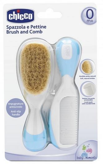 Chicco Szczotka naturalne włosie + grzebyk to zestaw przyborów toaletowych zaprojektowany z myślą o codziennej pielęgnacji najmłodszych dzieci. Szczotka wykonana jest z naturalnego włosia, wykończenie grzebienia jest zaokrąglone dla delikatnego czesania dziecka. Duży poręczny uchwyt pozwala pewnie trzymać przybory.