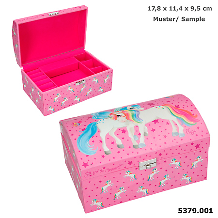 Ta piękna skrzynka na biżuterię pomaga utrzymać pokój Twojego dziecka w porządku. Kolczyki, bransoletki, gumki włosów lub naszyjniki - w tej szkatułce wszystkie Twoje rzeczy są w bezpiecznym miejscu.