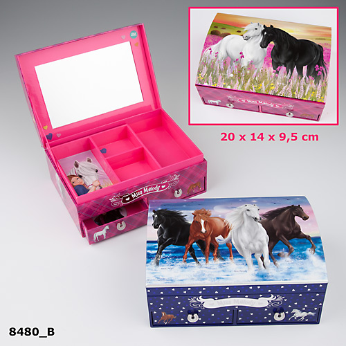 SZKATUŁKA Z KONIKIEM, z lusterkiem, 2 kolory, dodatkowe szufladki na drobiazgi.