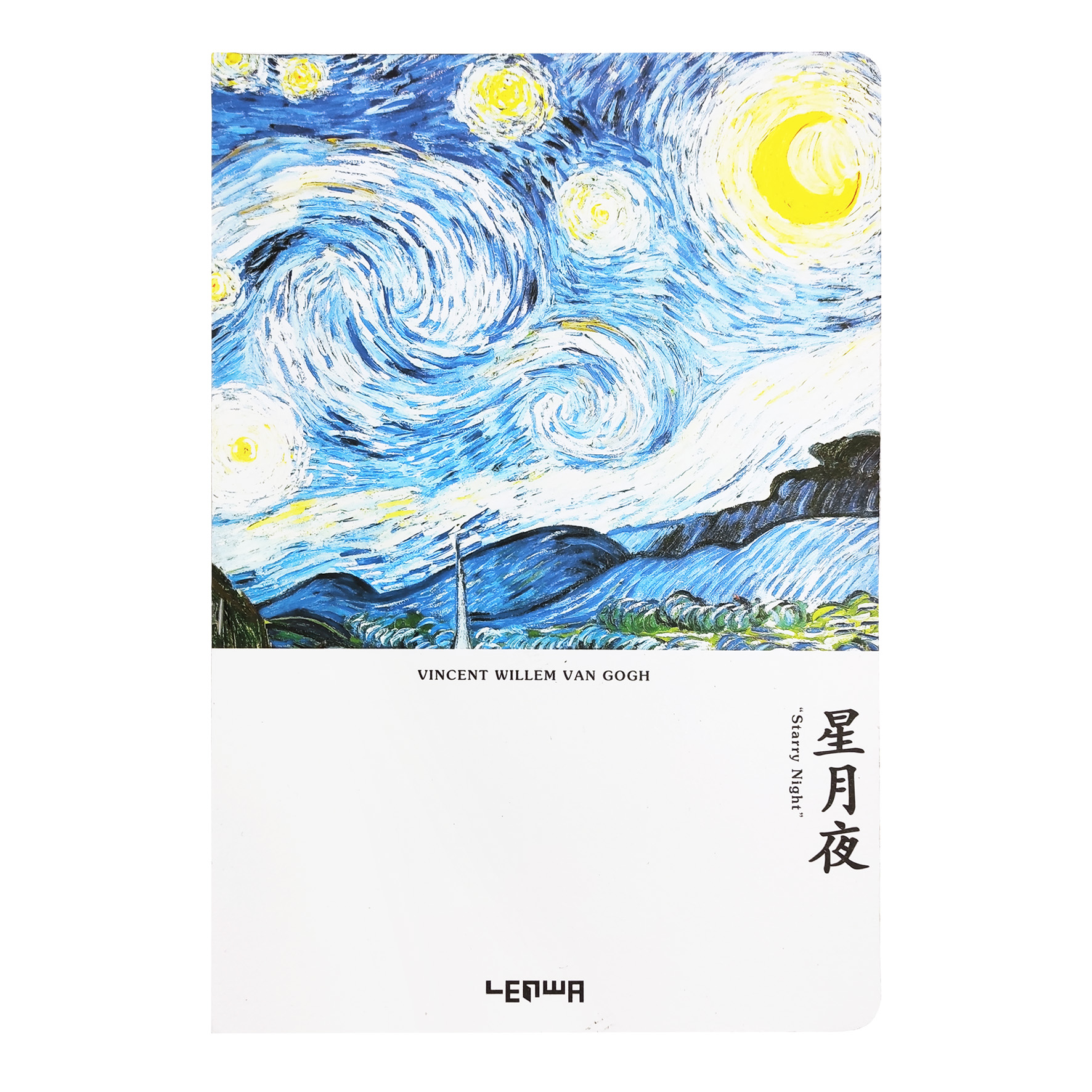 Szkicownik A5 w twardej oprawie z niebanalna okładką przedstawiającą reprodukcję obrazu Vincenta Van Gogha Gwiaździsta noc . Posiada 100 gładkich, szytych kartek o gramaturze 100gsm, w tym również kartki craft o gramaturze 80 gsm. Umożliwia to wykonywanie szkiców węglem, ołówkiem i kredkami.