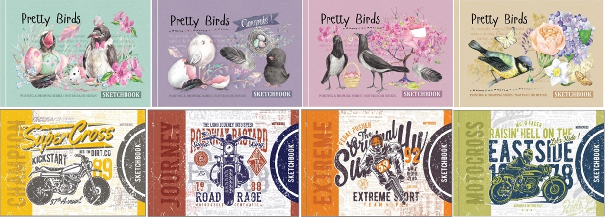 Szkicownik 197x124 36 stron 100g/m2 TW, mix wzorów, wzór wysyłany losowo.