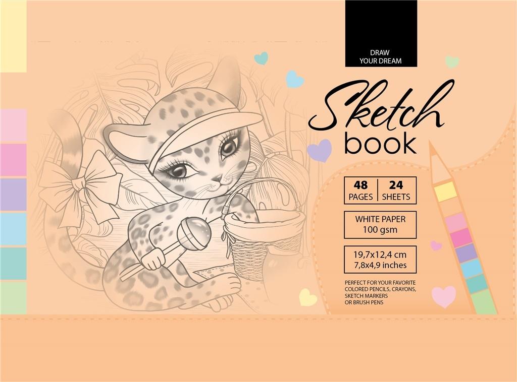 Szkicownik 197x124 mm, 48 stron, gramatura papieru 100g/m2. Ołówki, kredki, markery, mazaki, pędzle - tych rzeczy możesz użyć w tym szkicowniku! Namaluj swoje marzenia!