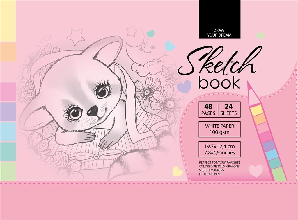 Szkicownik 197x124 mm, 48 stron, gramatura papieru 100g/m2. Ołówki, kredki, markery, mazaki, pędzle - tych rzeczy możesz użyć w tym szkicowniku! Namaluj swoje marzenia!