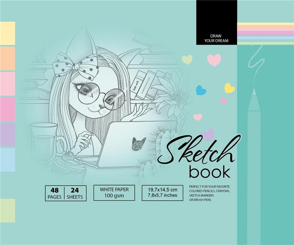 Szkicownik 197x145 mm, 48 stron, gramatura papieru 100g/m2. Ołówki, kredki, markery, mazaki, pędzle - tych rzeczy możesz użyć w tym szkicowniku! Namaluj swoje marzenia!