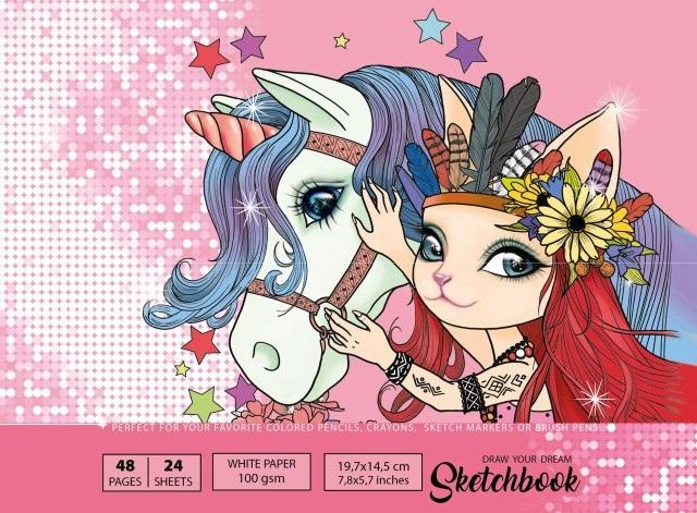 Szkicownik 197x145 48 stron 100g/m2 TW 21579 Jednorożec