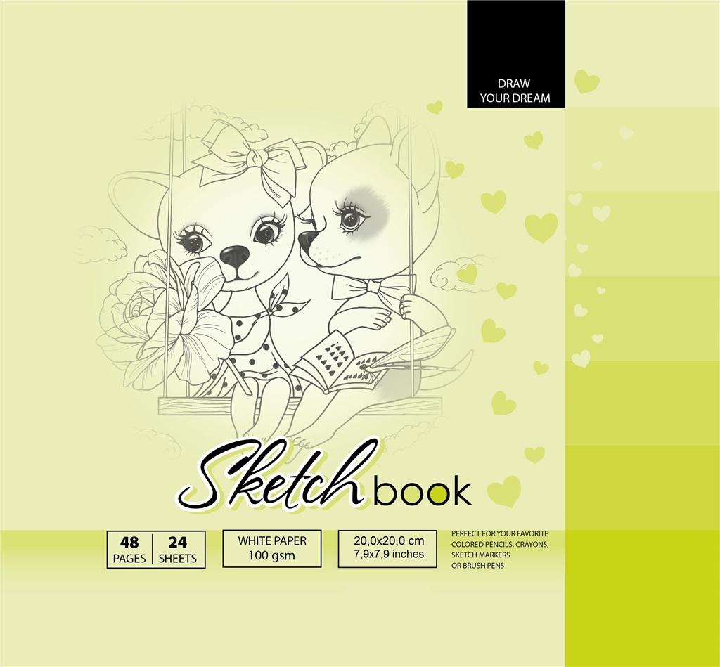 Szkicownik 200x200 mm, 48 stron, gramatura papieru 100g/m2. Ołówki, kredki, markery, mazaki, pędzle - tych rzeczy możesz użyć w tym szkicowniku! Namaluj swoje marzenia!