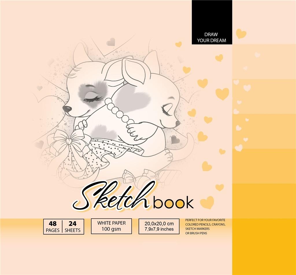 Szkicownik 200x200 mm, 48 stron, gramatura papieru 100g/m2. Ołówki, kredki, markery, mazaki, pędzle - tych rzeczy możesz użyć w tym szkicowniku! Namaluj swoje marzenia!