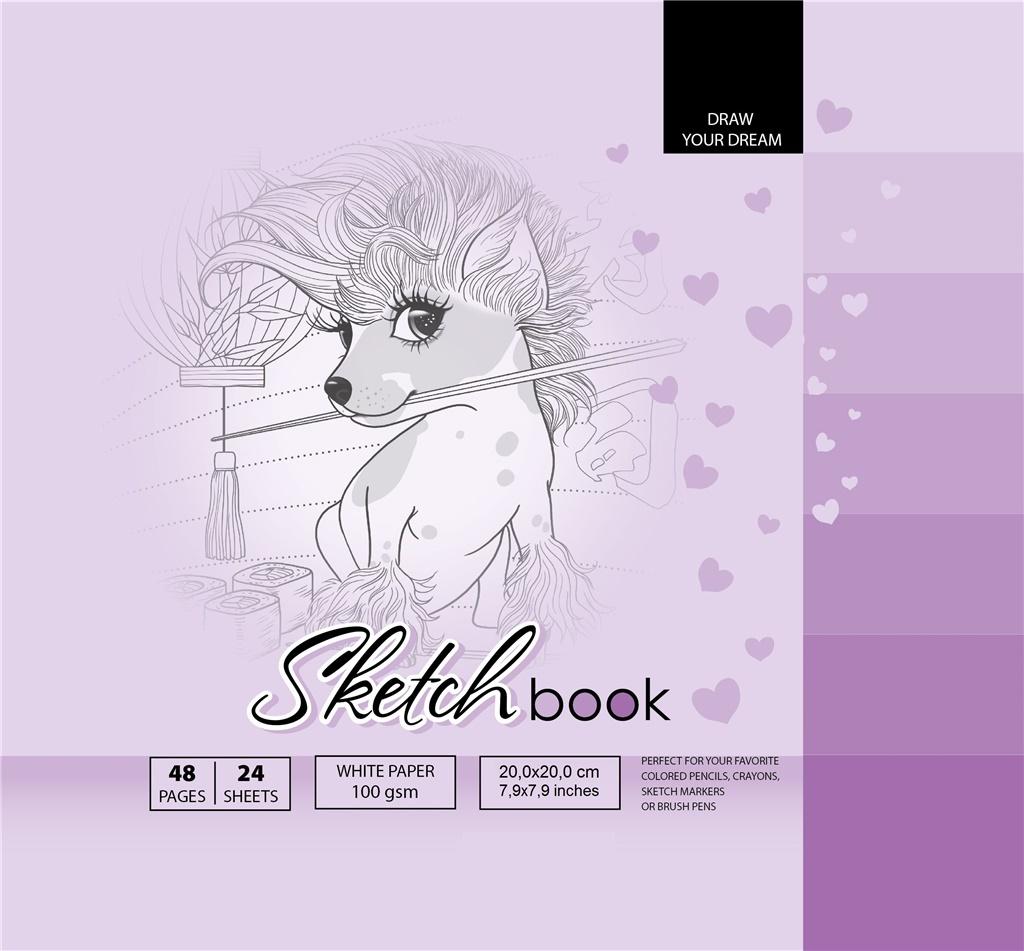 Szkicownik 200x200 mm, 48 stron, gramatura papieru 100g/m2. Ołówki, kredki, markery, mazaki, pędzle - tych rzeczy możesz użyć w tym szkicowniku! Namaluj swoje marzenia!