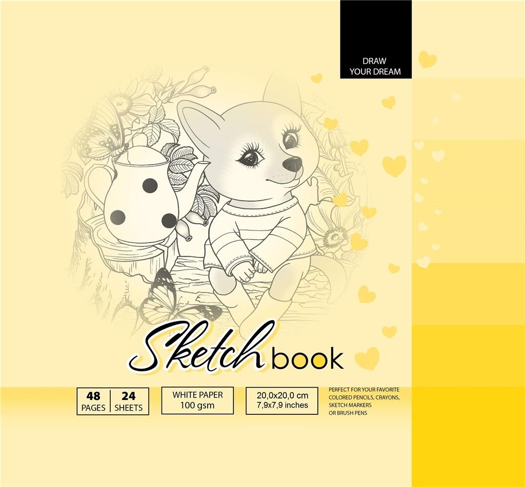 Szkicownik 200x200 mm, 48 stron, gramatura papieru 100g/m2. Ołówki, kredki, markery, mazaki, pędzle - tych rzeczy możesz użyć w tym szkicowniku! Namaluj swoje marzenia!