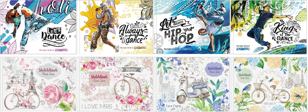 Szkicownik 240x165 36 stron 100g/m2 TW, mix wzorów, wzór wysyłany losowo.