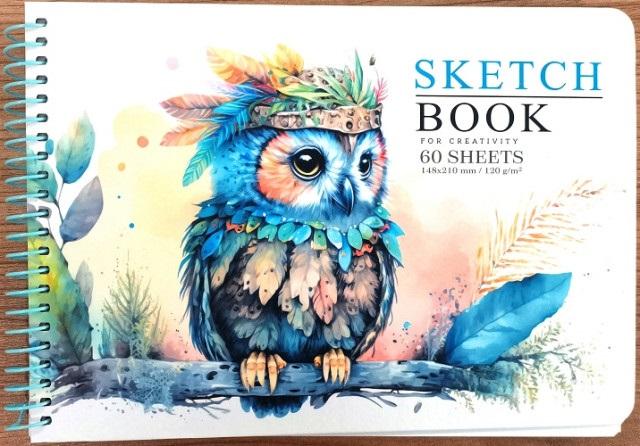 Szkicownik N9589 A5 koło 60 kartek gładki Sowa, gramatura papieru 120g/m2