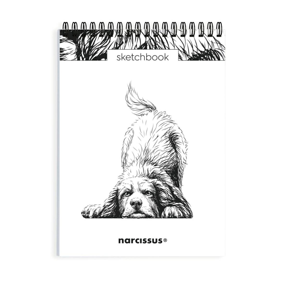 NARCISSUS pionowy szkicownik artystyczny na spirali A5 Pies Berneńczyk, 60 kartek z perforacją