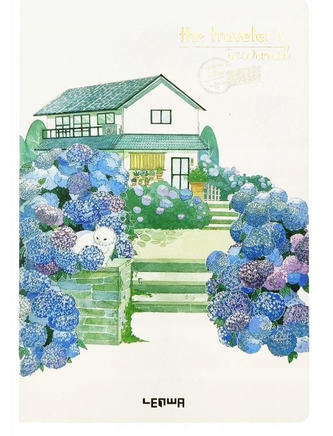 Szkicownik B5 w twardej oprawie z niebanalną okładką przedstawiającą dom z ogrodem pełnym niebieskich kwiatów hortensji. Posiada 100 gładkich, szytych kartek o gramaturze 100gsm, w tym również kartki craft o gramaturze 80 gsm. Umożliwia to wykonywanie szkiców węglem, ołówkiem i kredkami.