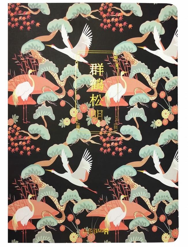 Szkicownik B5 w twardej oprawie z niebanalną okładką przedstawiającą żurawie wśród orientalnej, kolorowej roślinności na czarnym. Posiada 100 gładkich, szytych kartek o gramaturze 100gsm, w tym również kartki craft oraz czarne. Umożliwia to wykonywanie szkiców węglem, ołówkiem i kredkami.